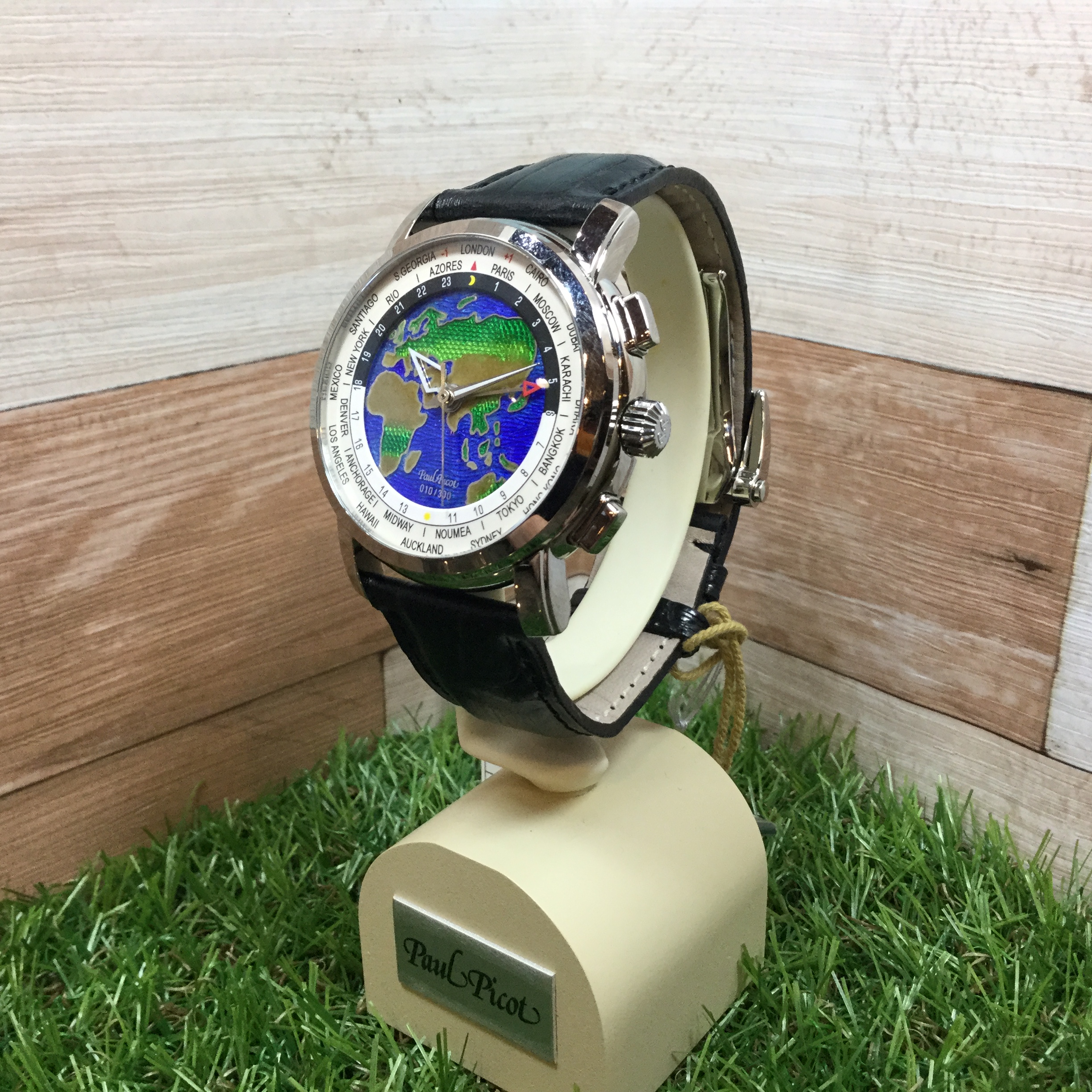 P0482.SG.1022.10 世界限定010/300 ムーブメント: PP1460 自動巻/21石/ 28,800振動/パワーリザーブ約42時間 ケース: SS製/ケース径・42mm/ケース厚・12.5mm/無反射コーティングサファイヤガラス /5気圧防水/シースルーバック ダイヤル: グランフーエナメル ファンクション: GMT機能 ストラップ: アリゲーター製 LIMITED EDITION:300本