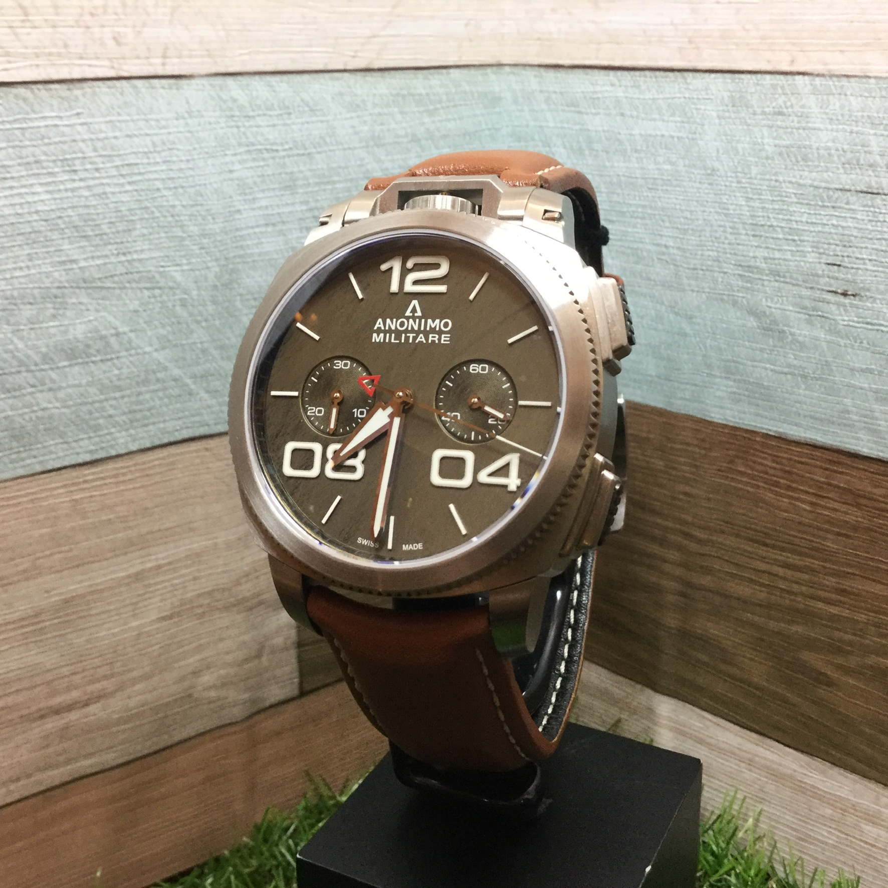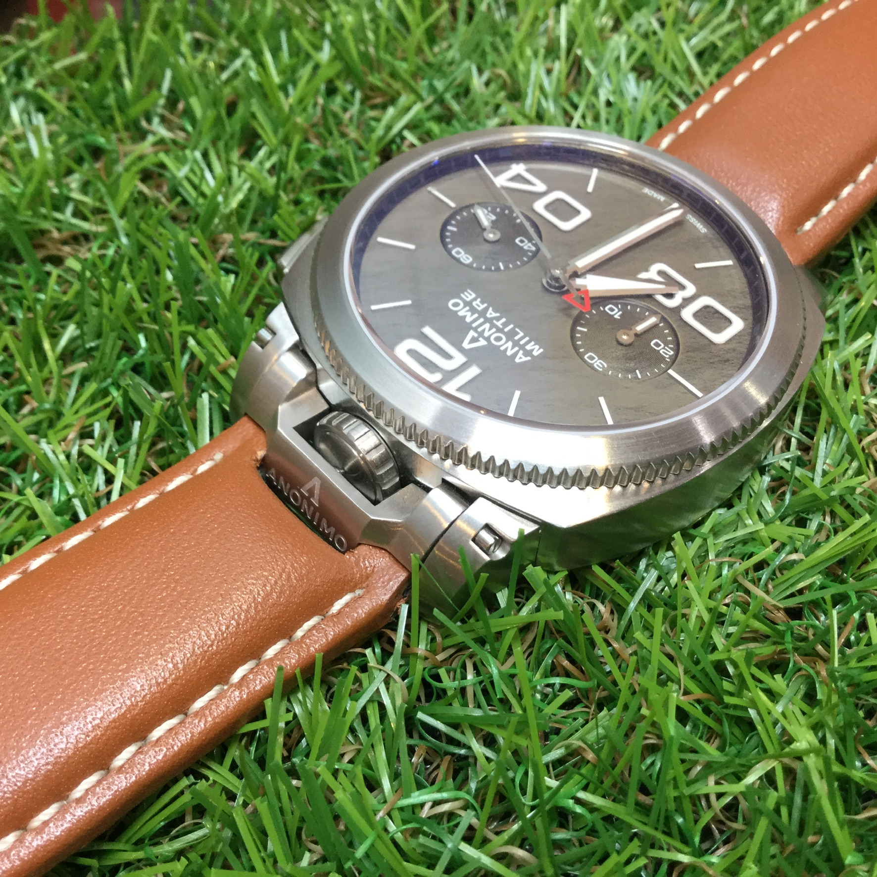 品番 AM-1120.01.002.A02 ケースサイズ φ43.4mm ケース素材 ステンレススチール ムーブメント 自動巻 セリタ SW300 (Dubois Depraz 2035M クロノグラフモジュール)、 28,800振動/時、約42時間パワーリザーブ、スイス製 防水性 120m防水 機能 クロノグラフ、3時位置スモールセコンド、9時位置ミニッツカウンター 風防 無反射ドーム型サファイアクリスタル ストラップ レザー インデックス&ハンズ スーパールミノバ